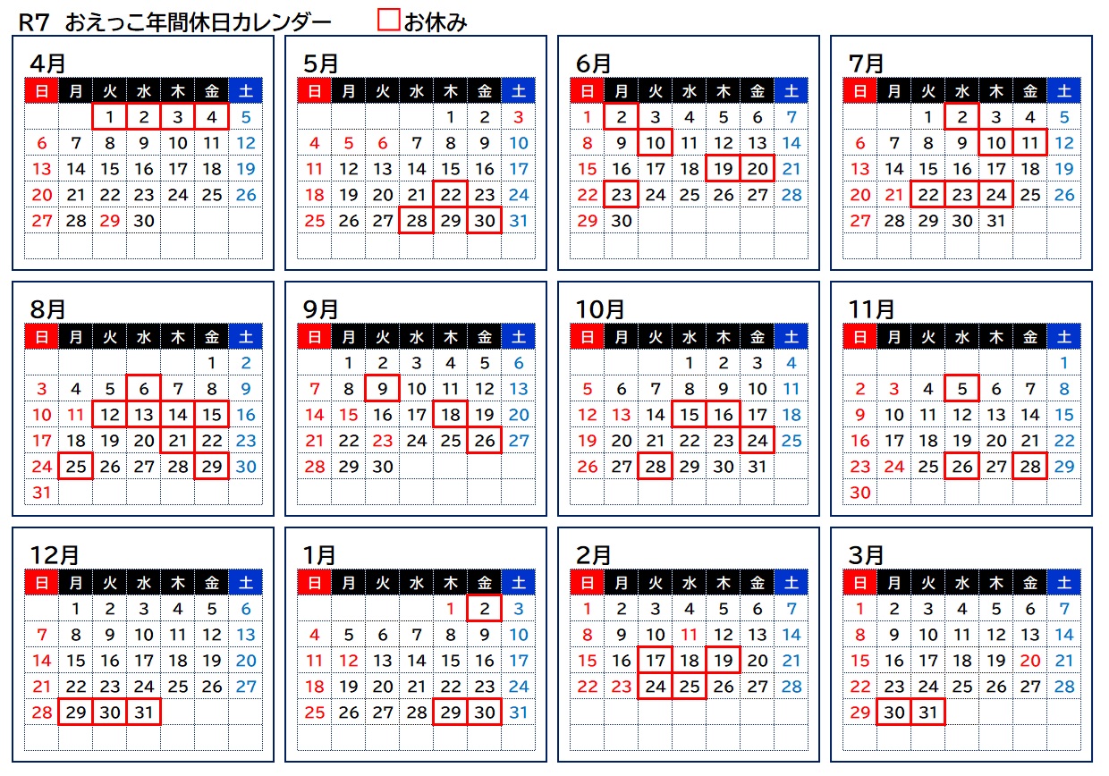 ※11月5日(水) お休み・・R8.1月28日(水) 通常通り実施